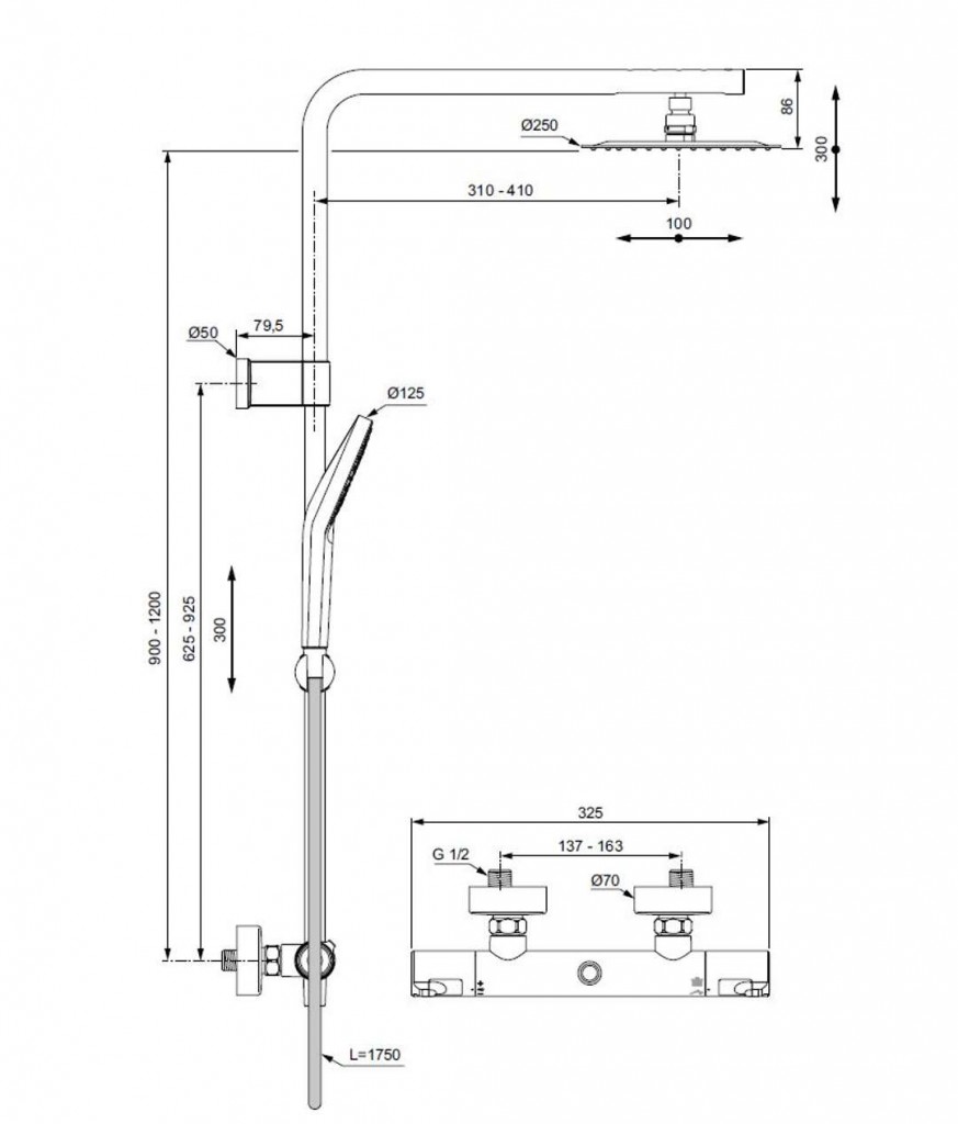 IDEAL STANDARD - CeraTherm Sprchový set s termostatom, priemer 25 cm, 3 prúdy, chróm (A7704AA)