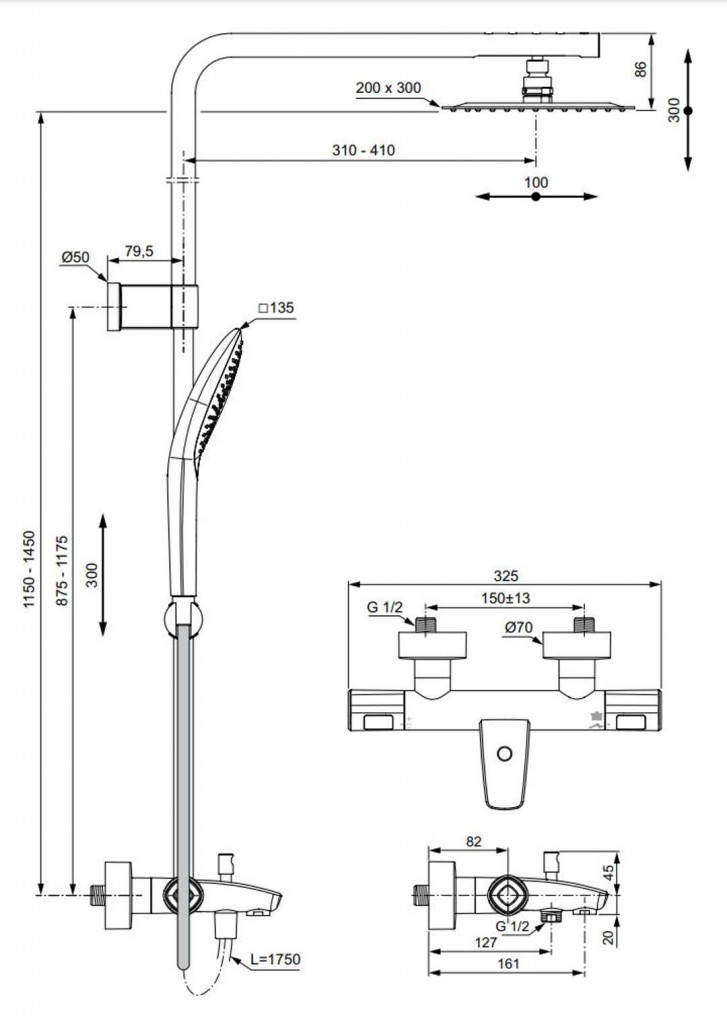 sprchovú hadicu Idealflex 1750 mm, teleskopickú s prchovou tyč a držiak sprchy