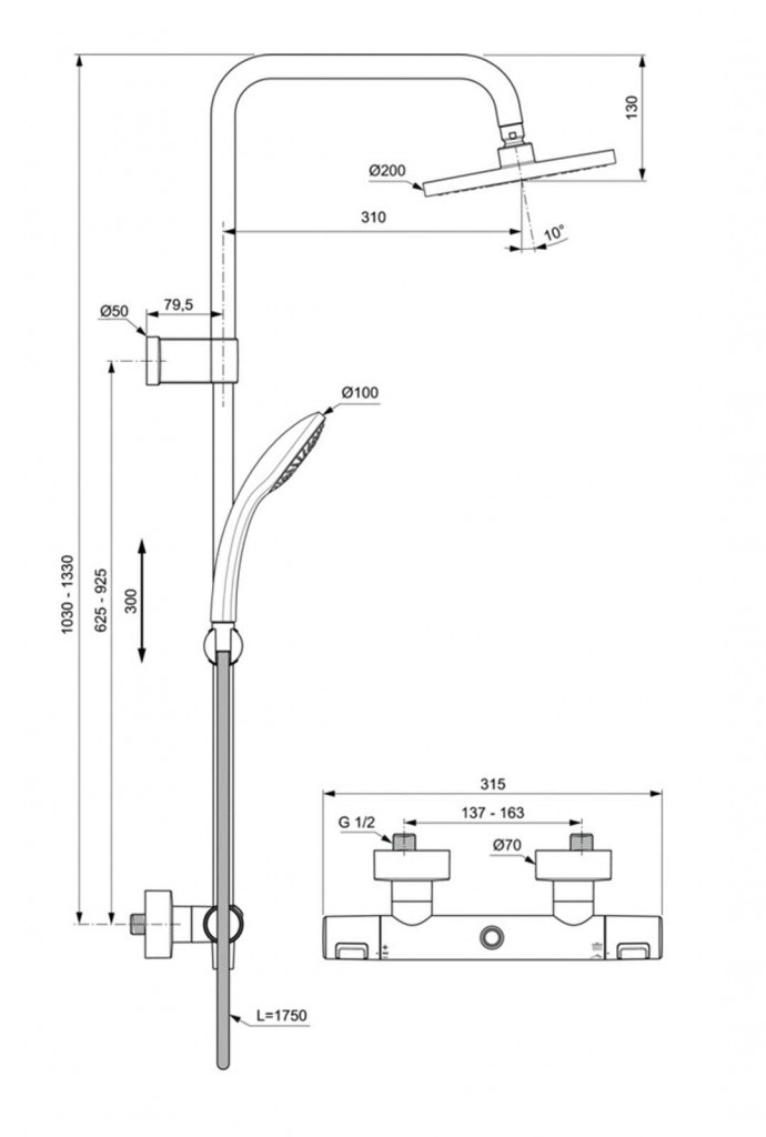 - dĺžku sprchovej tyče je možné upraviť počas inštalácie