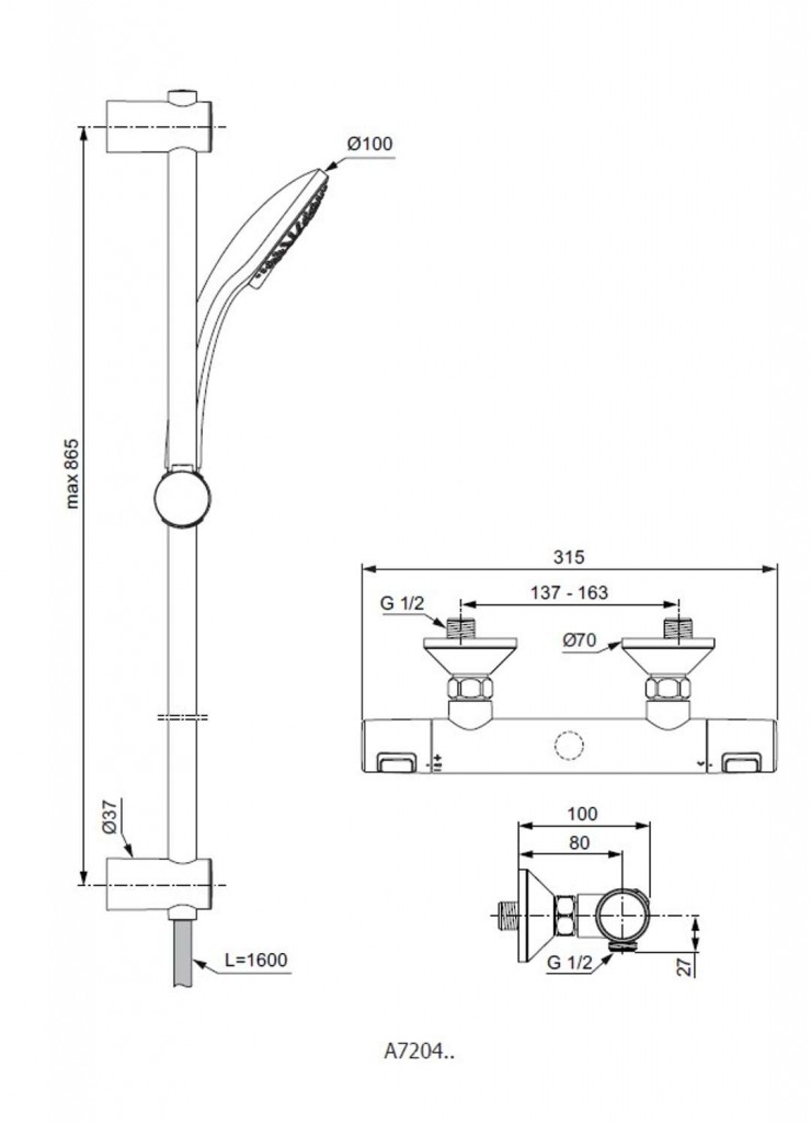 - sprchová tyč s posuvným kovovým držiakom sprchy