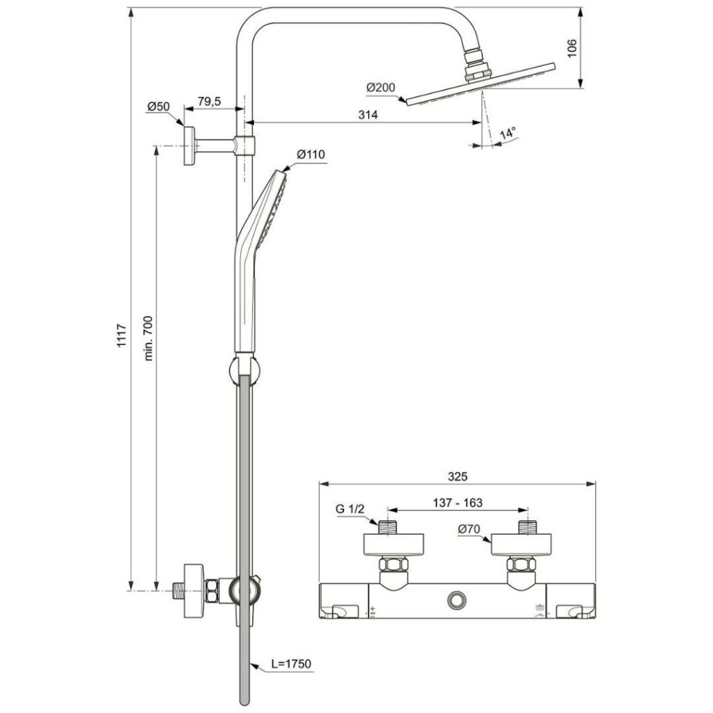 Sprchový set Ceratherm T50 s prepínačom obsahuje