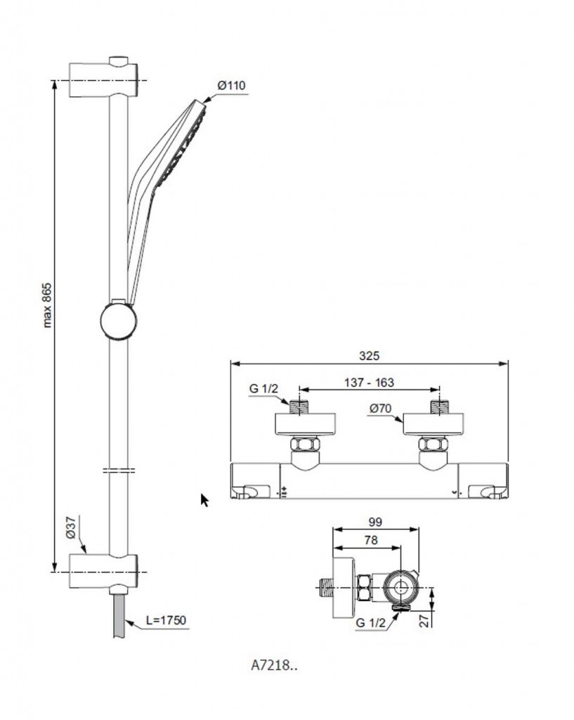 - sprchová tyč s posuvným kovovým držiakom sprchy