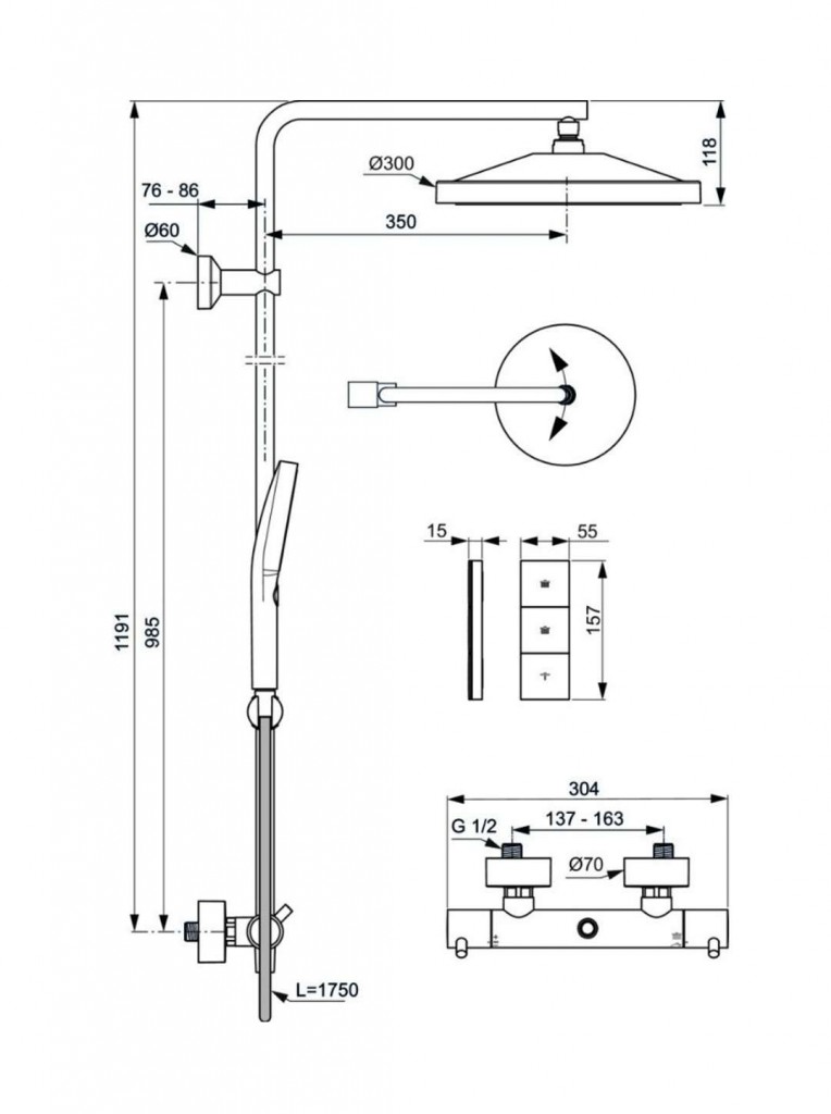 - voľne umiestniteľné, max. vzdialenosť od hlavovej sprchy: 10 metrov