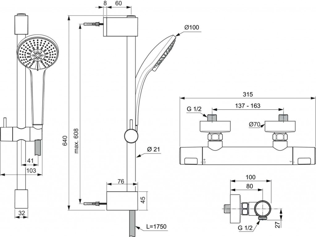 - s výškovo nastaviteľným držiakom ručnej sprchy
