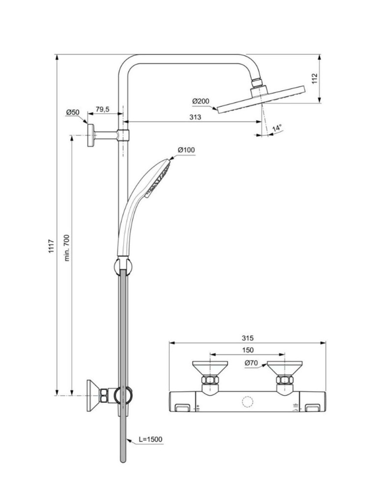sprchovú termostatickú batériu Ceratherm T25: