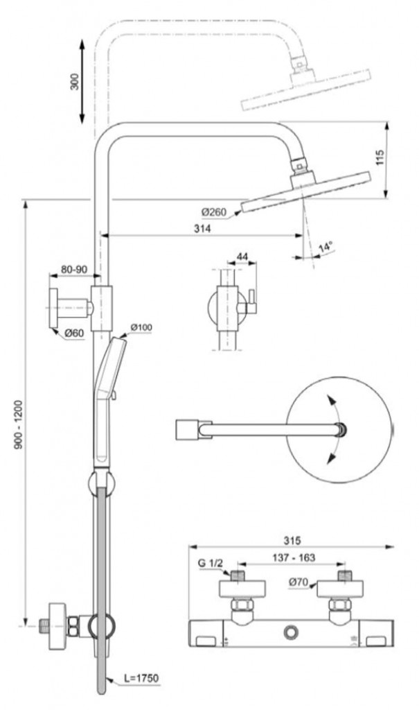 - s výškovo nastaviteľným držiakom ručnej sprchy