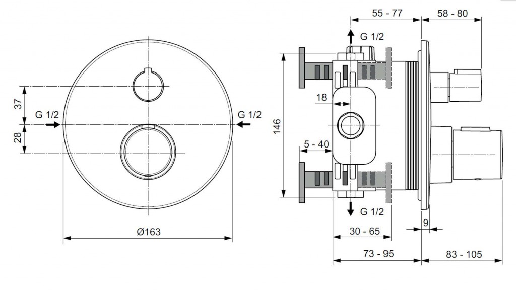 - kovová ovládacia rukoväť s bezpečnostným tlačidlom na 40°C