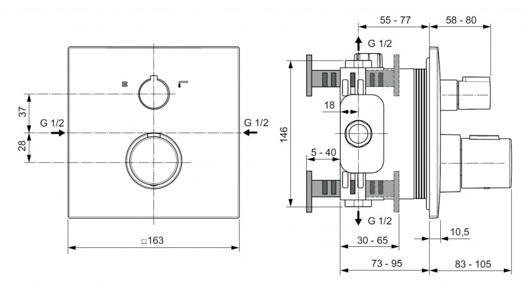- kovová ovládacia rukoväť s bezpečnostným tlačidlom na 40°C