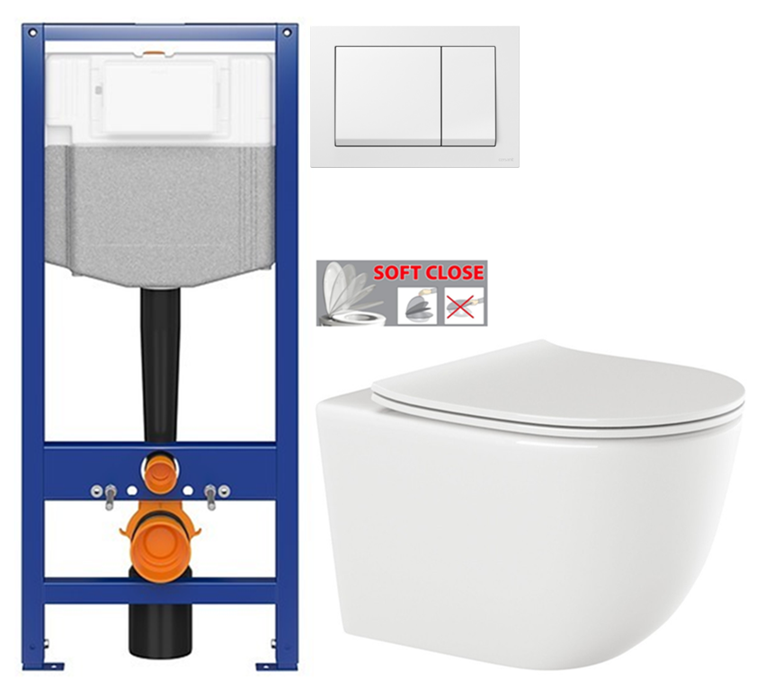 Závesná klozetová misa TINOS v jednej rovine so stenou, biela so sedadlom soft-close ( CE-91-001-W )