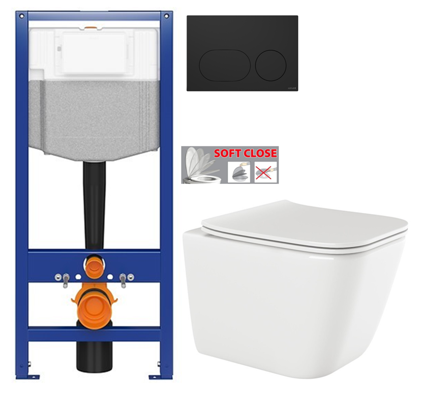 Závesná klozetová misa PAROS v jednej rovine so stenou, biela so SLIM sedadlom soft-close (CE-90-001-W)