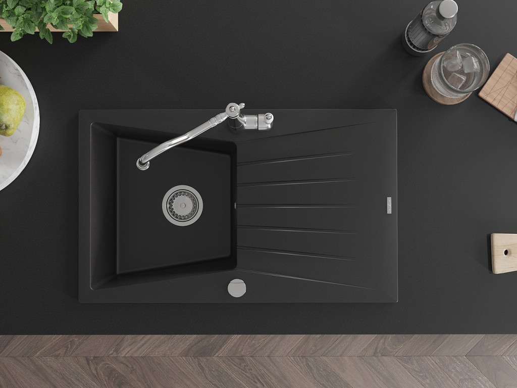 Špeciálne zloženie materiálu použitého na výrobu je žula (80% žula – kameň, 20% živica) a jeho vysoká hustota garantuje bezpečné používanie výrobku, a preto sú granitové drezy tak obľúbené. Vďaka povrchovej úprave nie je na granitovom dreze vidieť zaschnuté kvapky, je odolný voči škvrnám a nestráca farbu. Povrch je odolný voči nárazu, poškriabaniu, zmene farby, vysokej teplote a teplotným šokom. Pri ich údržbe sa používajú obvyklé čistiace, prostriedky alebo prostriedky na riad s jemným abrazívom. Výhodou je rozmanitá farebná ponuka.