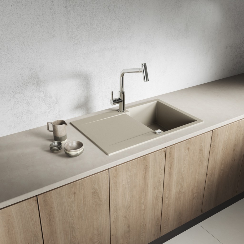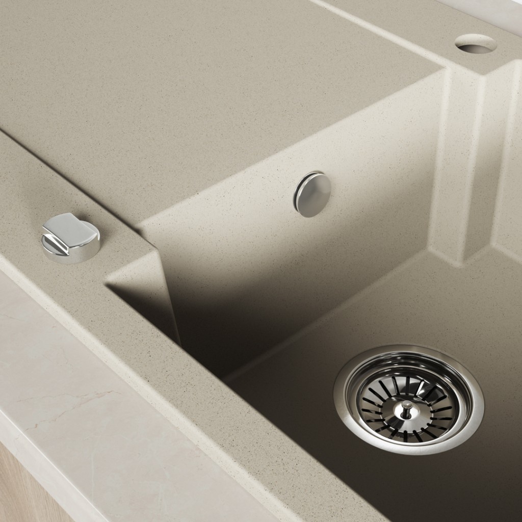 Rad drezov Chichi od značky Laveo je ideálny pre malé kuchyne, najmä v bytových domoch s obmedzeným priestorom. Návrhy Marie Kubiak zahŕňajú modely s jedným drezom, s polovičným aj plným odtokom, čo vám umožní prispôsobiť si drez individuálnym potrebám – od jednoduchej varianty s jedným drezom až po funkčnejšie verzie s priestorom na uloženie riadu. Každý drez Chichi je vybavený praktickým sifónom šetriacim miesto, ktorý šetrí miesto pod drezom tým, že vytvára priestor na uloženie odpadkového koša alebo čistiacich prostriedkov. Drezy Chichi, ktoré sú k dispozícii v elegantných farbách – béžovej, šedej a čiernej – ľahko zapadajú do rôznych štýlov interiérov. Laveo poskytuje 10-ročnú záruku a servisný zásah u zákazníka, čo zaisťuje spoľahlivosť a jednoduché použitie. Drezy v tomto rade sú odolné voči tepelným šokom, vysokým teplotám, nečistotám a nárazom a štandardné vybavenie zahŕňa zacvakávaciu zátku a 3,5-palcové sitko, ktoré chránia odtok pred nečistotami z riadu.