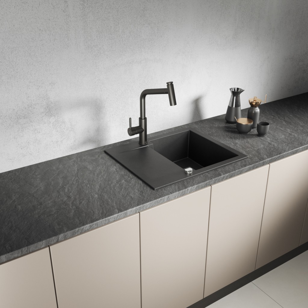 Rad drezov Chichi od značky Laveo je ideálny pre malé kuchyne, najmä v bytových domoch s obmedzeným priestorom. Návrhy Marie Kubiak zahŕňajú modely s jedným drezom, s polovičným aj plným odtokom, čo vám umožní prispôsobiť si drez individuálnym potrebám – od jednoduchej varianty s jedným drezom až po funkčnejšie verzie s priestorom na uloženie riadu. Každý drez Chichi je vybavený praktickým sifónom šetriacim miesto, ktorý šetrí miesto pod drezom tým, že vytvára priestor na uloženie odpadkového koša alebo čistiacich prostriedkov. Drezy Chichi, ktoré sú k dispozícii v elegantných farbách – béžovej, šedej a čiernej – ľahko zapadajú do rôznych štýlov interiérov. Laveo poskytuje 10-ročnú záruku a servisný zásah u zákazníka, čo zaisťuje spoľahlivosť a jednoduché použitie. Drezy v tomto rade sú odolné voči tepelným šokom, vysokým teplotám, nečistotám a nárazom a štandardné vybavenie zahŕňa zacvakávaciu zátku a 3,5-palcové sitko, ktoré chránia odtok pred nečistotami z riadu.