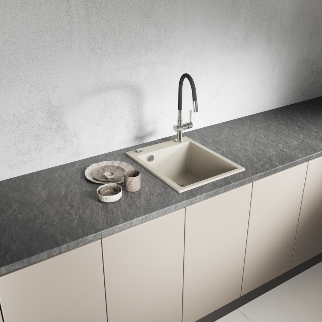 Rad drezov Chichi od značky Laveo je ideálny pre malé kuchyne, najmä v bytových domoch s obmedzeným priestorom. Návrhy Marie Kubiak zahŕňajú modely s jedným drezom, s polovičným aj plným odtokom, čo vám umožní prispôsobiť si drez individuálnym potrebám – od jednoduchej varianty s jedným drezom až po funkčnejšie verzie s priestorom na uloženie riadu. Každý drez Chichi je vybavený praktickým sifónom šetriacim miesto, ktorý šetrí miesto pod drezom tým, že vytvára priestor na uloženie odpadkového koša alebo čistiacich prostriedkov. Drezy Chichi, ktoré sú k dispozícii v elegantných farbách – béžovej, šedej a čiernej – ľahko zapadajú do rôznych štýlov interiérov. Laveo poskytuje 10-ročnú záruku a servisný zásah u zákazníka, čo zaisťuje spoľahlivosť a jednoduché použitie. Drezy v tomto rade sú odolné voči tepelným šokom, vysokým teplotám, nečistotám a nárazom a štandardné vybavenie zahŕňa zacvakávaciu zátku a 3,5-palcové sitko, ktoré chránia odtok pred nečistotami z riadu.