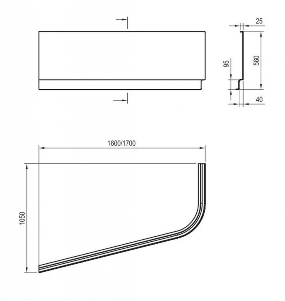 - rozmery: 1600 x 1050 mm, výška: 560 mm