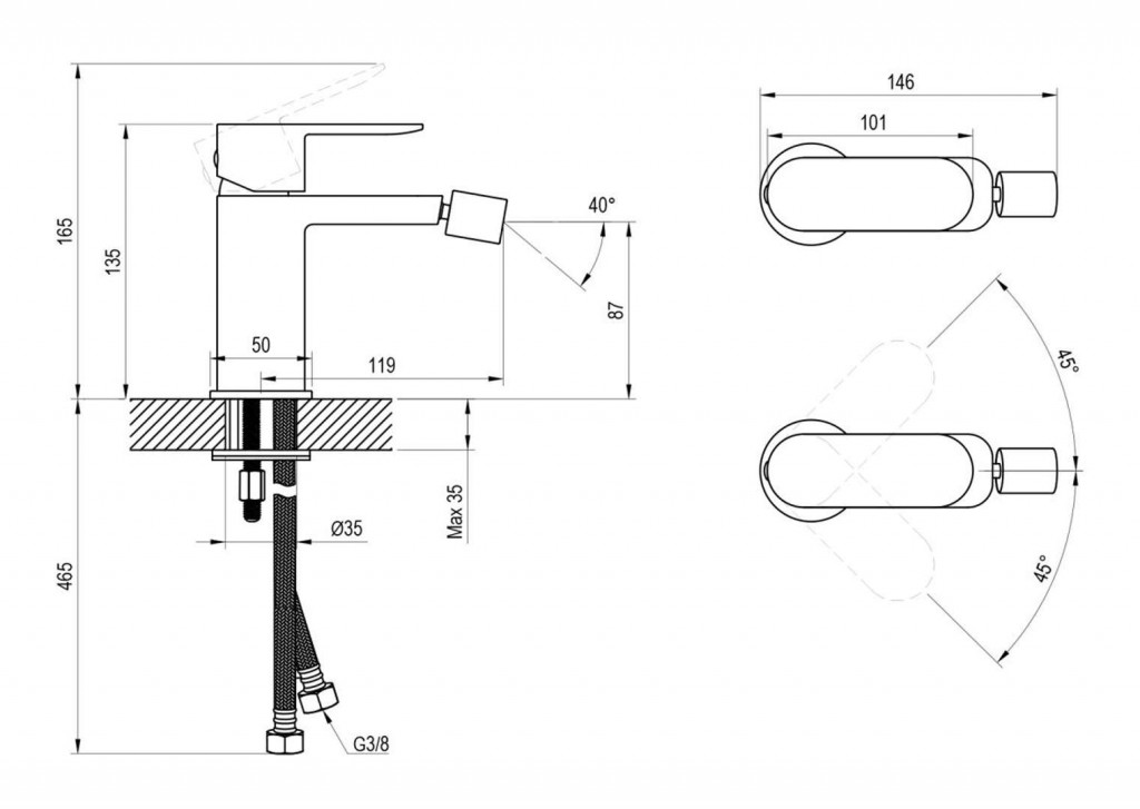 Bidetová batéria CR II 056.00CR, bez výpustu