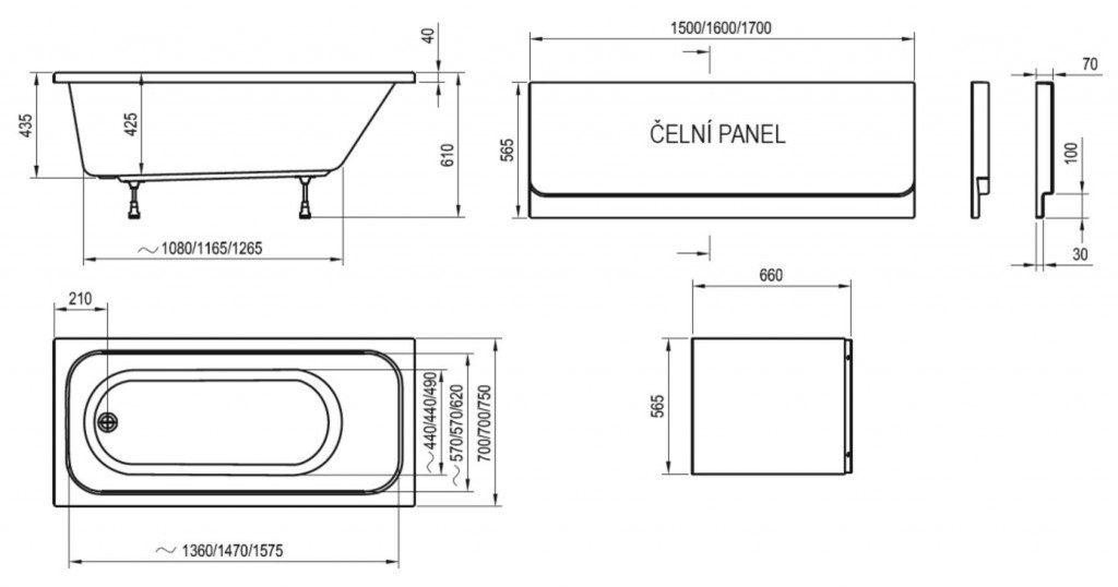 - doplnky: čelný a bočný panel, vaňový odtokový komplet (je potrebné dokúpiť samostatne)