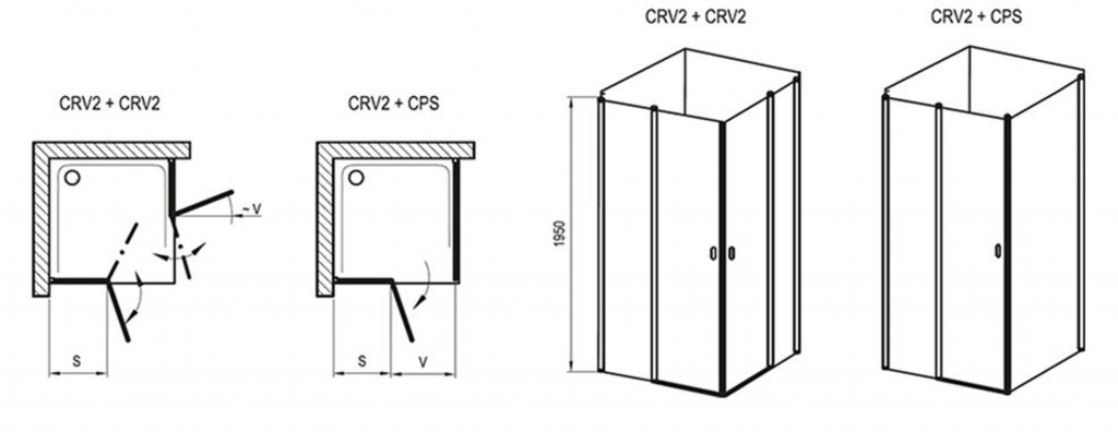 Pre vytvorenie rohového sprchovacieho kúta treba objednať 2 kusy výrobku CRV2.