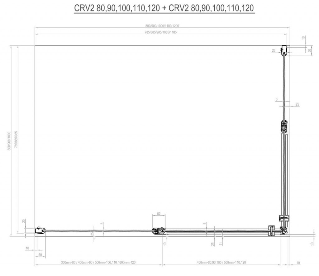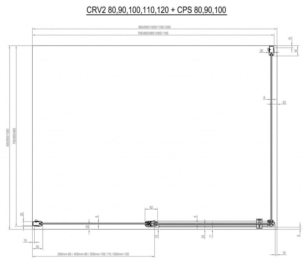 Pre vytvorenie rohového sprchovacieho kúta treba objednať 2 kusy výrobku CRV2.