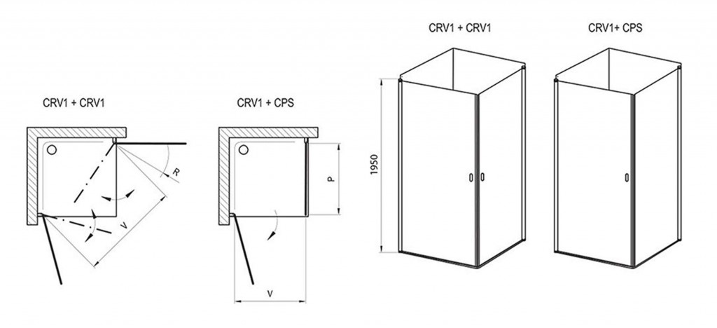 - možnosť inštalácie s pevnou stenou CPS alebo so sprchovými dverami CRV1 pre vytvorenie sprchovacieho kúta