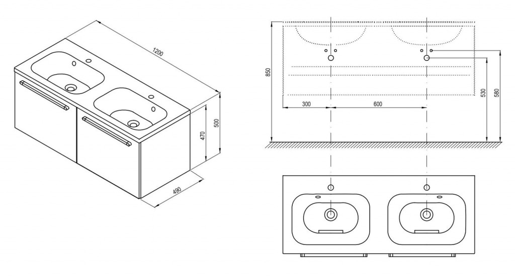 Dvojumývadlo nie je súčasťou dodávky, je potrebné objednať samostatne.