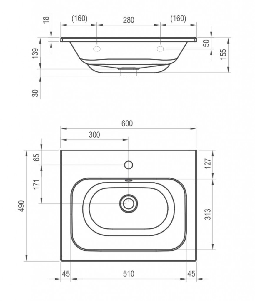 Umývadlový výpust, batéria ani sifón nie sú súčasťou balenia.