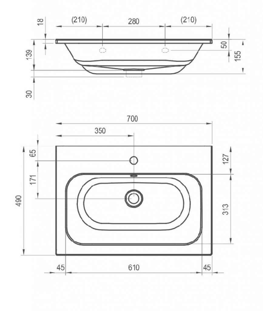 Umývadlový výpust, batéria ani sifón nie sú súčasťou balenia.