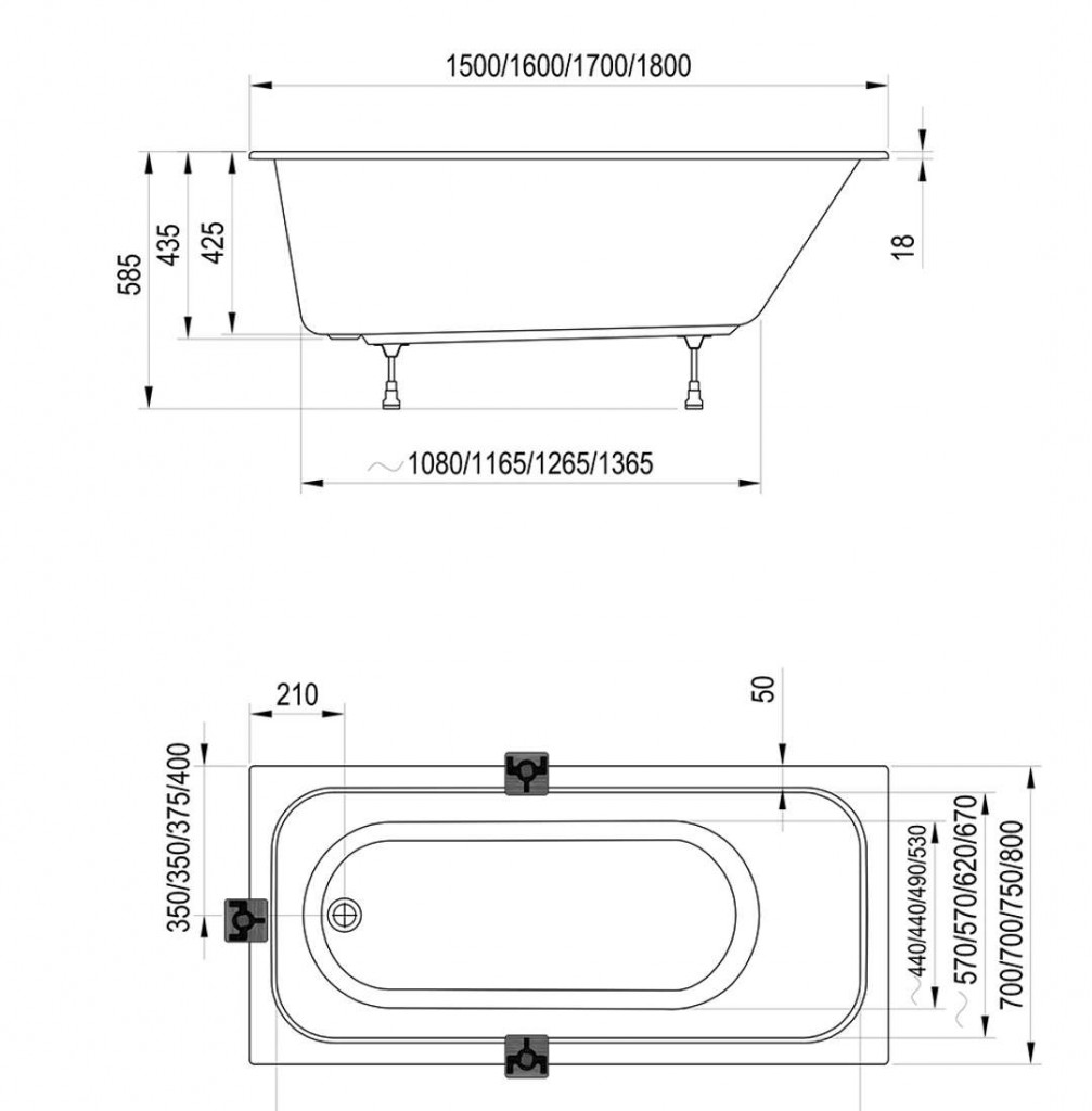 Odtoková súprava ani podpora vane nie sú súčasťou balenia.