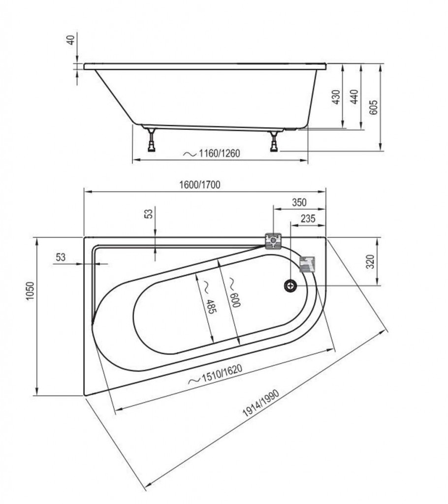 - vaňovú odtokovú súpravu s napúšťaním, dĺžka: 570 mm, treba objednať zvlášť
