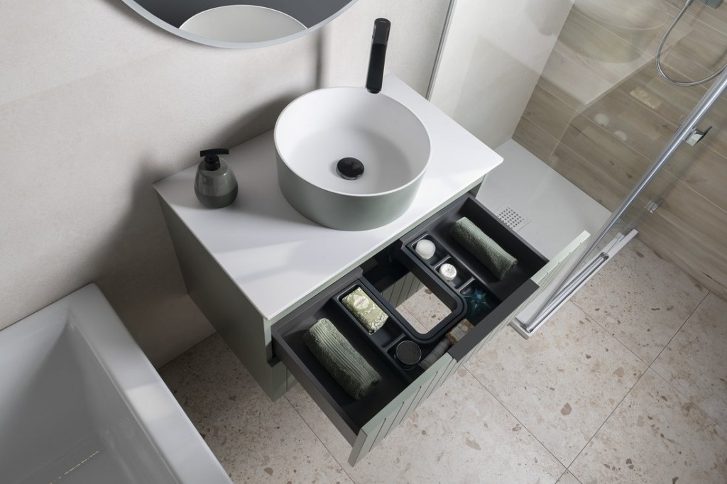 Nábytok je vybavený pojazdy zásuviek s pomalým dojazdom a systémom automatického dovretí zásuviek. Už žiadne hlučné zatváranie.