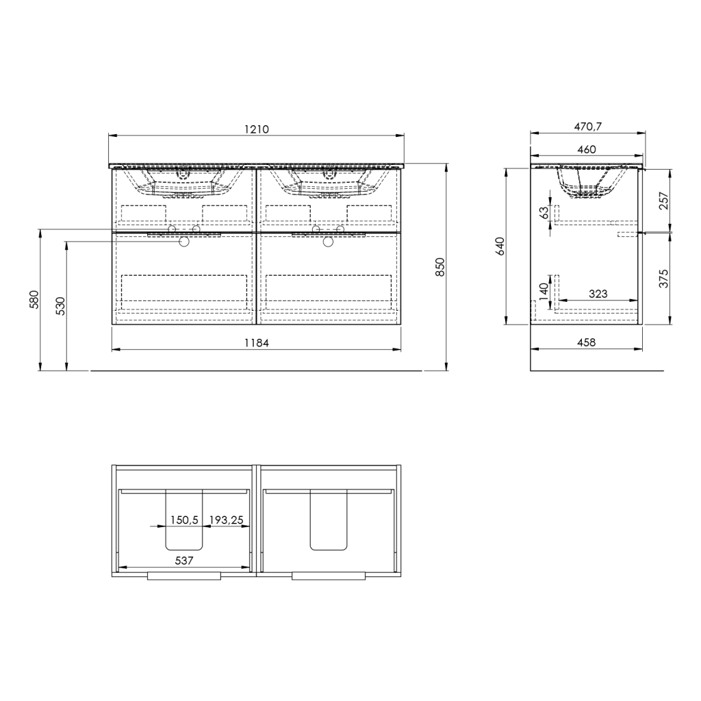 SAPHO - CIRASA umývadlová skrinka 118,4x64x46cm, dub alabama (CR121-2222-21)