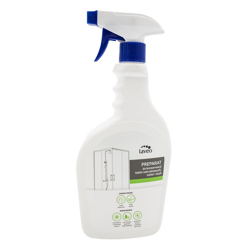 Prípravok na starostlivosť o sprchy, zrkadlá a sklenené plochy od značky Laveo je praktickým a moderným riešením na udržanie kúpeľne v bezchybnej čistote. Vytvára neviditeľnú hydrofóbnu vrstvu, ktorá odpudzuje vodu aj nečistoty, a tým výrazne znižuje tvorbu vodného kameňa a mydlových usadenín.