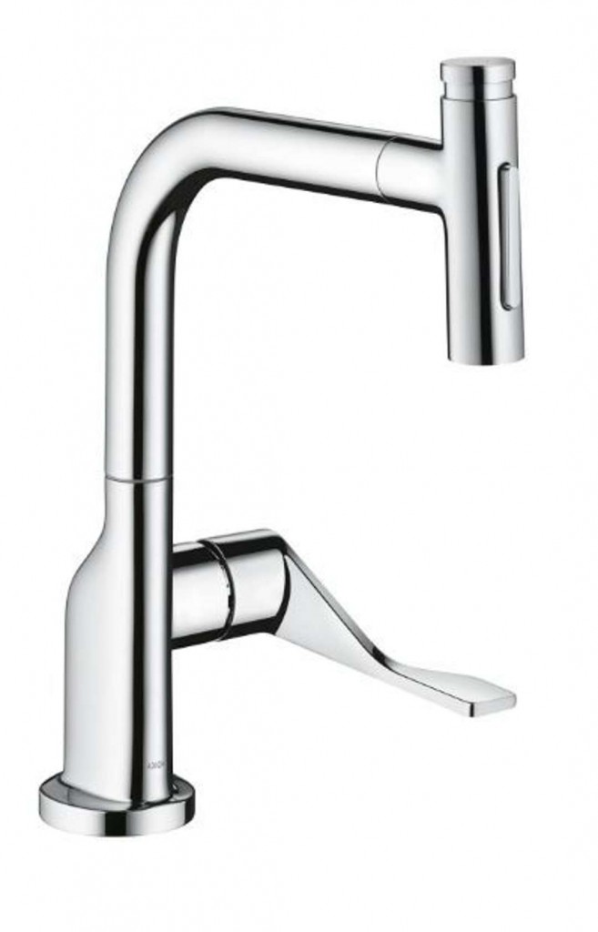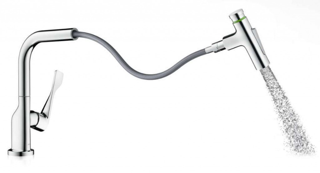 - sprchový prúd aretovateľný, prepínanie prúdu stlačením tlačidla a automatické spätné prepnutie prúdu pri zatvorení armatúry