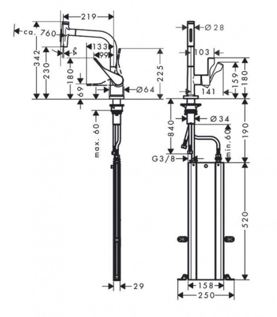 - spôsob montáže prívodnej hadice G 3/8