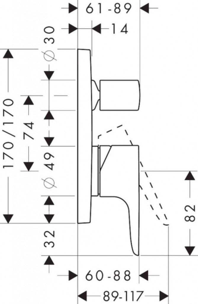 Vaňová páková batéria pod omietku bez telesa