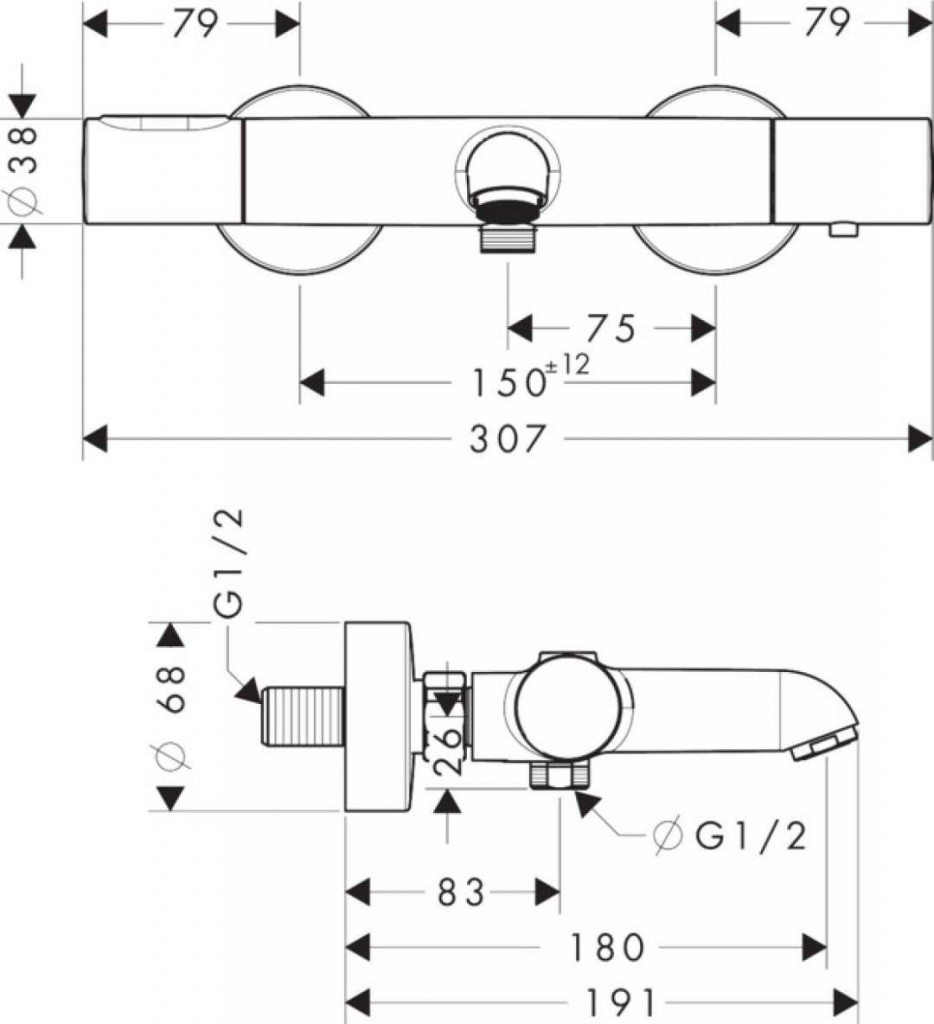 Nástenná termostatická vaňová batéria