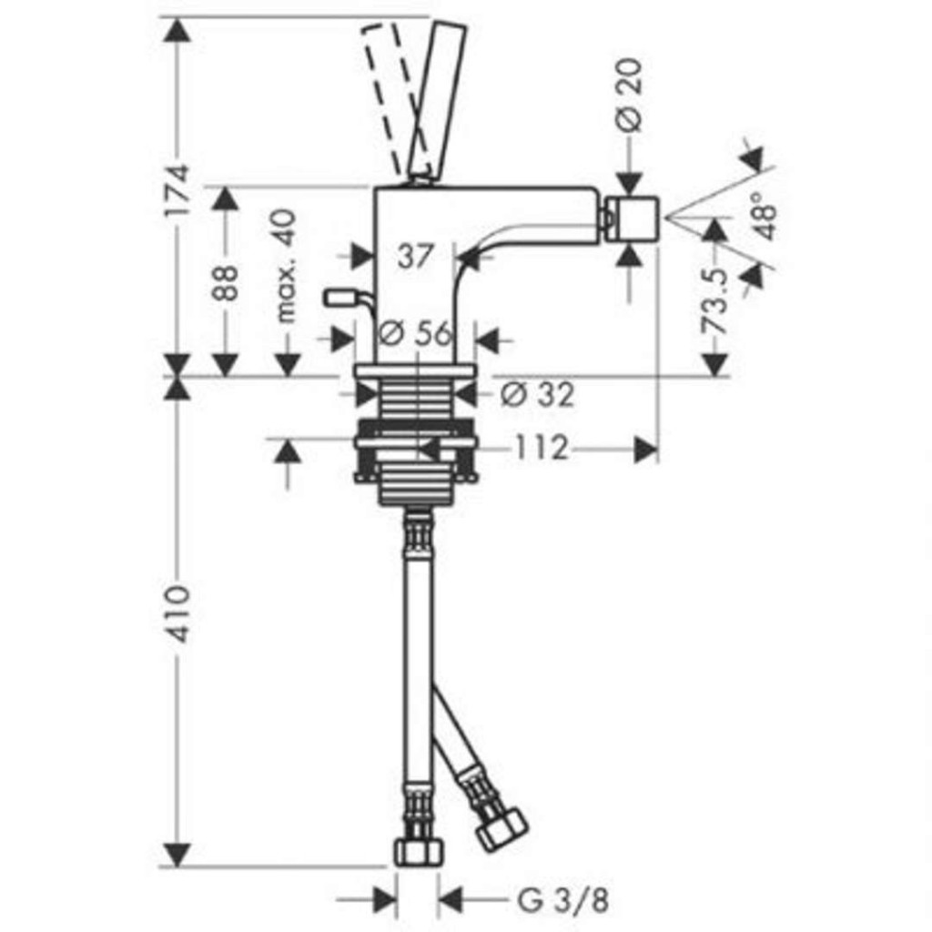 Páková bidetová batéria s odtokovou súpravou s tiahlom