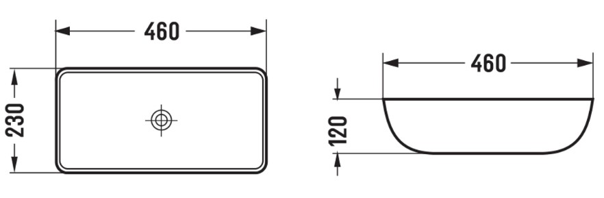 Samotné umývadlo na dosku je dlhé 46 cm a hlboké 23 cm , čo nabáda k tomu, že je možnosť umiestnenia dvoch umývadiel vedľa seba /pokiaľ vám priestor dovolí/. Umývadlo nemá bezpečnostný prepad ani otvor pre kohútik. Preto k nemu vyberajte vysokú umývadlovú batériu alebo podomietkovú umývadlovú batériu . Vždy sa snažte vyberať takú, aby ústie kohútika smerovalo doprostred umývadla. Jedine tak zabránite nechcenému rozstrekovaniu vody a zároveň budete mať dostatok priestoru na umývanie rúk.