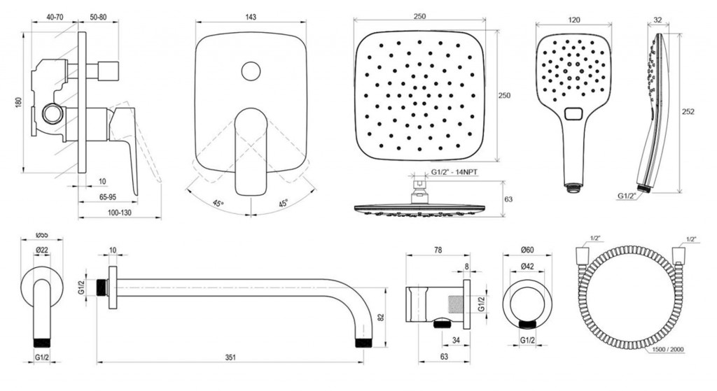 Sprchový podomietkový set CL 091.00CR obsahuje