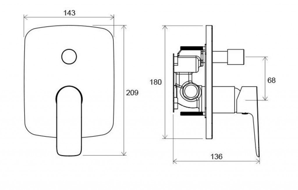 R-box obsahuje materiál pre prichytenie ku stene, nezahŕňa prípojky pre vedenie vody ani iný vodoinštalačný materiál. R-box obsahuje pracovný plastový krycí diel vnútorného tela batérie uloženého v R-boxu, ktorý aj pri demontáži vrchného dielu batérie zachováva rozvod vody v kúpeľni plne funkčný. Prostredníctvom tohto plastového dielu možno rozvod vody odvzdušniť, bez odstávky vody. R-box má jasne šípka označenie hornú časť výrobku, pre správnu orientáciu vlastného tela batérie.