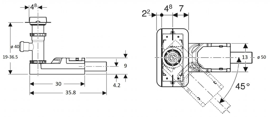 - základné teleso z EPS na prerušenie prenosu hluku a umiestnenie zápachovej uzávierky