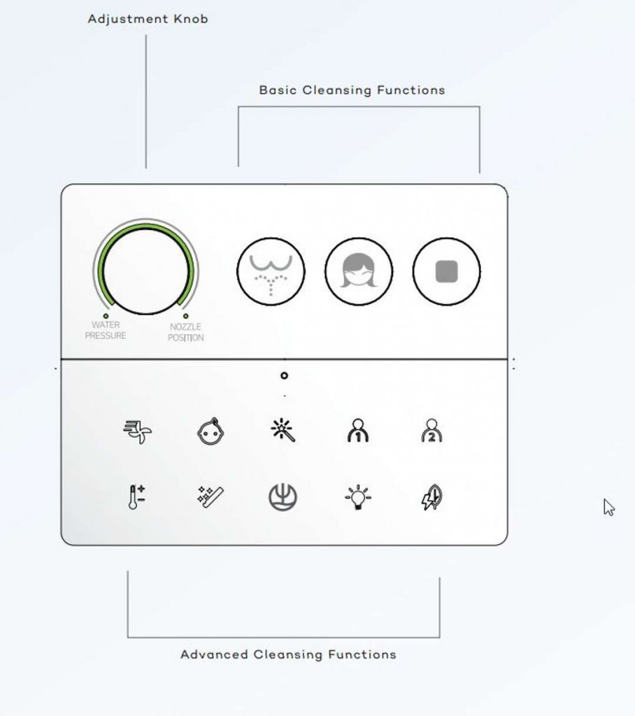 - je možné aj hlbšie čistenie sedacej spŕšky rukou (stlačte tlačidlo na 5 sekúnd, tryska zostane v plne vysunutej prevádzkovej polohe po dobu 180 sekúnd bez toho, aby dochádzalo k vypúšťaniu vody)