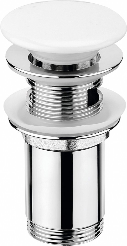 Okrúhla zátka click-clack je určená pre bidety a umývadlá s prepadom . Výrobok je vyrobený z vysoko kvalitnej mosadze. Odtok sa otvára a zatvára stlačením zátky prstom. Výrobok je v chrómovom prevedení s bielou keramickou zátkou.