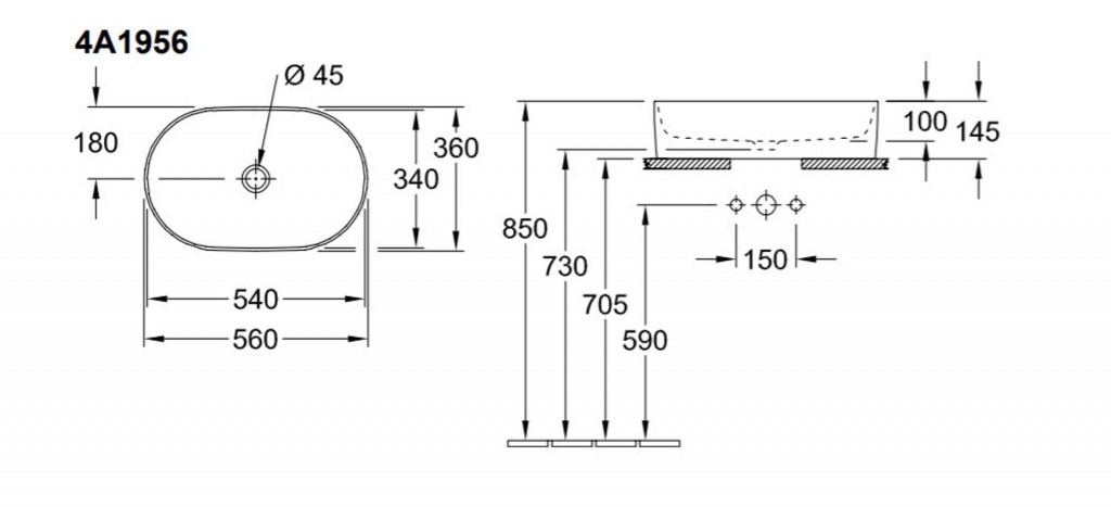 Umývadlo na postavenie na dosku, alebo kúpeľňovú skrinku