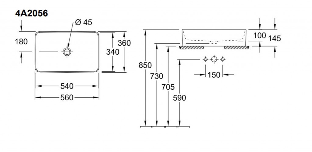 Umývadlo na postavenie na dosku, alebo kúpeľňovú skrinku