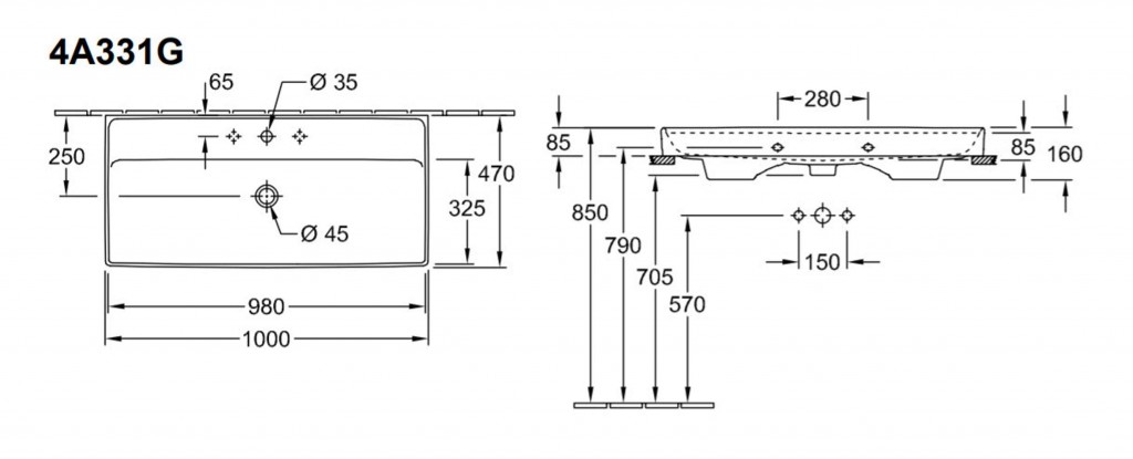 - spodná strana umývadla je brúsená
