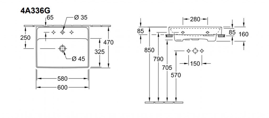 - spodná strana umývadla je brúsená