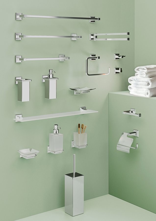 Malý hranatý úchyt na stenu a štíhle hranaté profily charakterizujú sériu COLORADO. Doplnky je možné na stenu privŕtať alebo nalepiť.