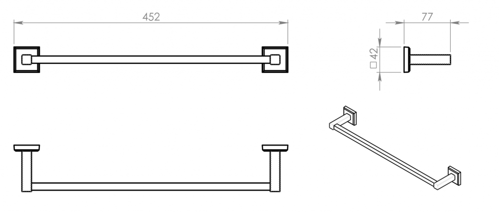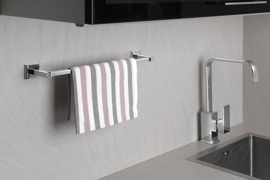 Malý hranatý úchyt na stenu a štíhle hranaté profily charakterizujú sériu COLORADO. Doplnky je možné na stenu privŕtať alebo nalepiť.