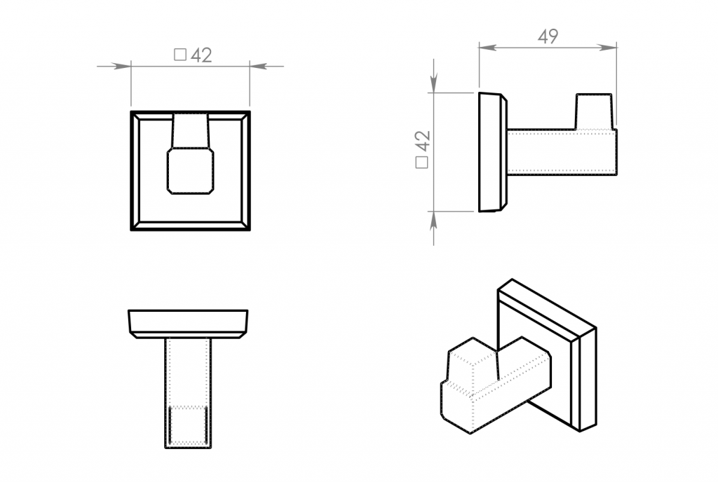 Malý hranatý úchyt na stenu a štíhle hranaté profily charakterizujú sériu COLORADO. Doplnky je možné na stenu privŕtať alebo nalepiť.